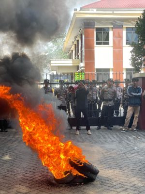 “Jangan biarkan mafia tanah berkeliaran dan merampas hak rakyat,” teriak salah satu orator dalam aksinya.
