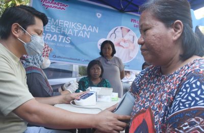 “Sudah ada ratusan masyarakat yang diperiksa, mulai cek tekanan darah, kolesterol, cek tensi hingga asam urat. Dokter yang kami hadirkan ada dua plus perawatnya, kami datangkan langsung dari RS Wahidin,” ungkapnya.