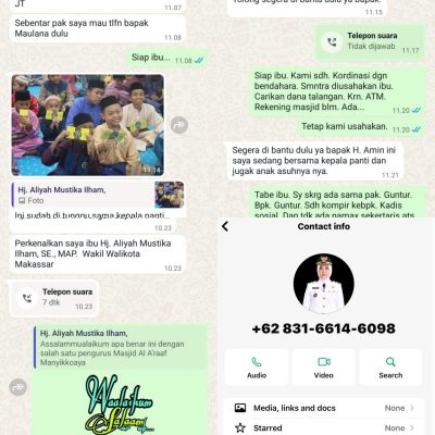 MAKASSAR, KORANMAKASSAR.COM – Wakil Wali Kota Makassar, Aliyah Mustika Ilham, mengingatkan masyarakat untuk meningkatkan kewaspadaan terhadap modus penipuan baru yang mencatut namanya dengan dalih pemberian sumbangan ke masjid.