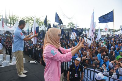 Mereka rela bertahan di bawah guyuran hujan demi menyaksikan secara langsung pasangan nomor urut 2 ini, yang semakin membuktikan popularitas dan kecintaan warga terhadap figur yang dikenal duet SEHATI ini.