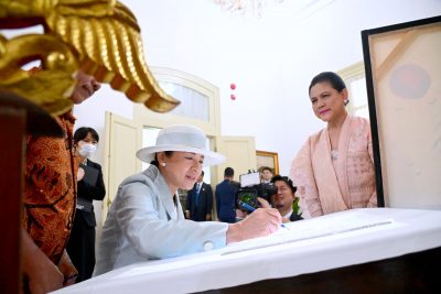 Selanjutnya, keduanya menuju lokasi pameran batik Jawa Hokokai yang merupakan pengaruh dari budaya Jepang, dan pameran batik Indonesia. Selepas itu, Ibu Iriana menjamu Permaisuri Masako dengan sajian teh hangat sambil berbincang ringan. (*)