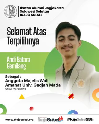 MAKASSAR, KORANMAKASSAR.COM — Ikatan Alumni Jogjakarta Sulawesi Selatan (IKAJO SULSEL) menyampaikan apresiasi atas terpilihnya Andi Batara Gemilang sebagai Anggota Majelis Wali Amanat (MWA) Universitas Gadjah Mada (UGM) periode 2026–2031 dari unsur mahasiswa.