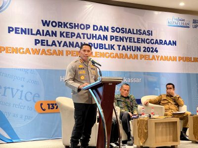 MAKASSAR, KORANMAKASSAR.COM – Kapolres Sidrap AKBP Erwin Syah, S. I. K,. M.H jadi narasumber kegiatan workshop dan sosialisasi penilaian kepatuhan penyelenggaraan pelayanan publik yang dilaksanakan di Hotel Four Point Makassar. Selasa (02/07/2024)